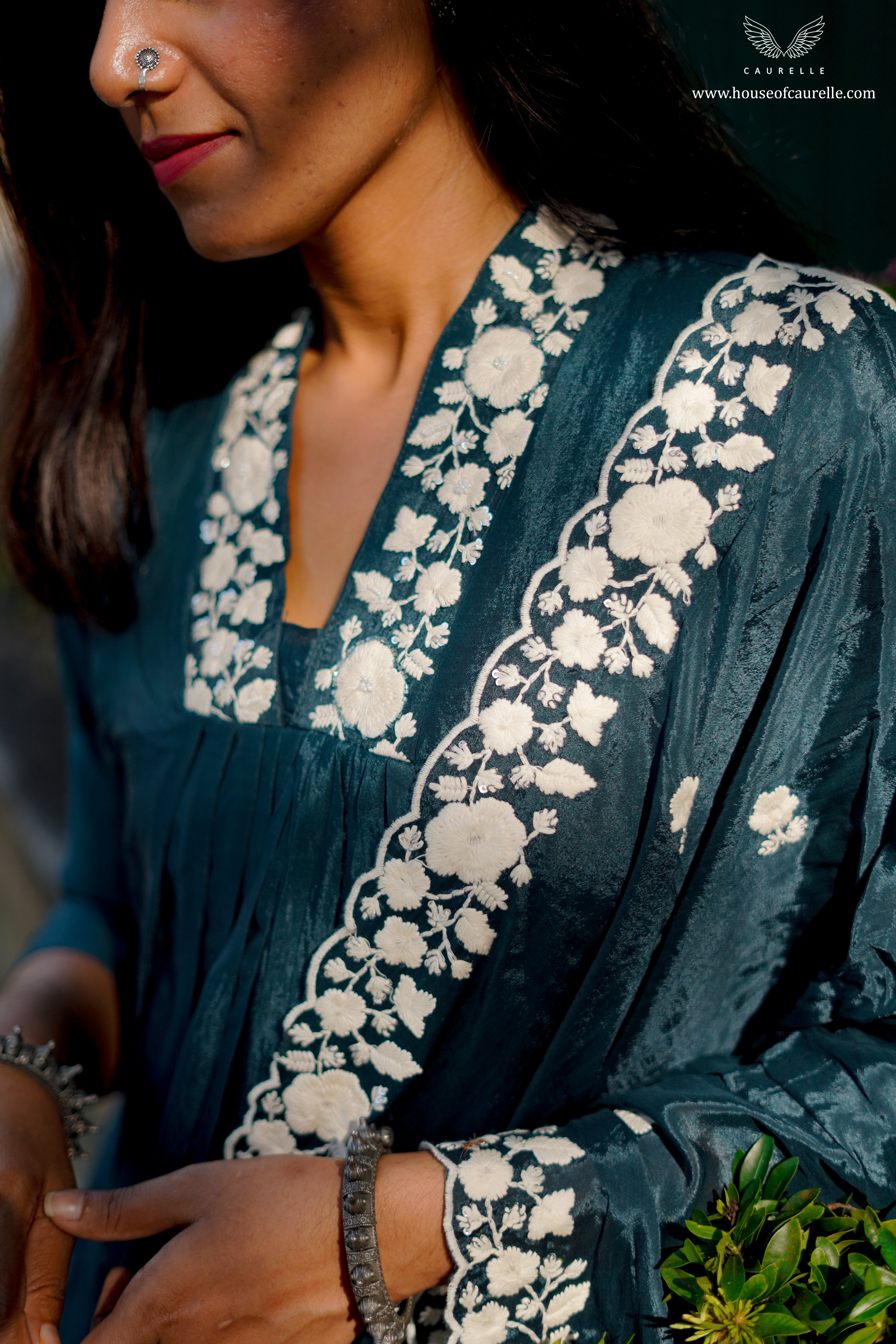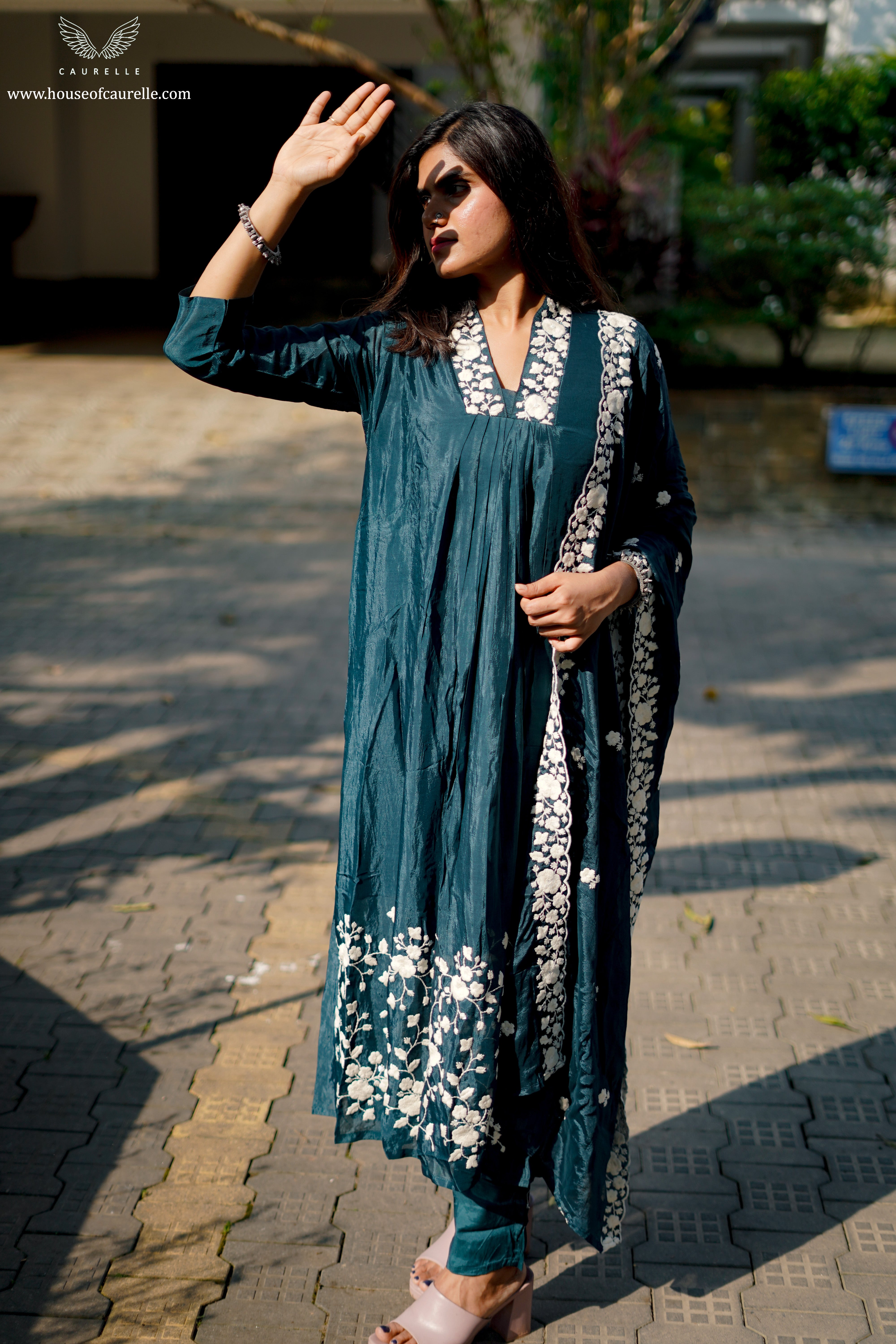 Deep Teal Embroidered Kurta Set
